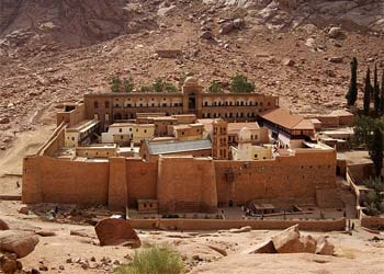 Этот православный монастырь расположен в 2 км от деревни. Бесплатное посещение монастыря всю неделю, кроме пятницы, субботы и православных праздников. Открыто только с 9.30 до 11.30. Требуется соответствующая одежда: сюда нельзя заходить женщинам в брюках, мини-юбках и платьях с открытыми плечами, а мужчинам в шортах. В 337 г. Елена — мать императора Константина, проникшись святостью этих мест, приказала построить небольшую часовню, посвященную Св. Деве Марии, на месте, где Моисей видел неопалимую купину. В 530 г. по приказу императора Юстиниана была построена большая базилика, ставшая в последствии церковью Преображения, и стены монастыря для защиты монахов от разбойничьих набегов. С тех пор монастырь приобрел вид неприступной крепости и устоял от набегов, от разрушения временем и землетрясений. За всю свою историю он никогда не разрушался и не захватывался.